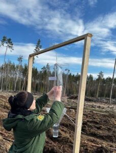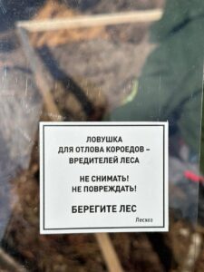 Вредитель, летя на запах, попадает в приемный стакан ловушки. Через определенные промежутки времени специалисты Ганцевичского лесхоза подсчитывают отловленных насекомых и дают оценку их численности.