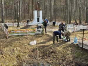 Участники мероприятия привели в порядок братскую могилу жертв фашизма, расположенную в лесном фонде, отдавая дань уважения памяти погибших, сохраняя историческую память.